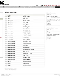 IT/trac2 계정(Account)과 권한(Permission) 1. Account 계정은 트랙-Admin-Accounts-User 에서 만듭니다. 계정으로 트랙에 로그인 할 수 있으며, 로그인 하기 전까지는 anonymous 로 인식 됩니다. 2. Permission 트랙에 접근하는 모든 사용자는 권한 설정에 의해 통제 당하게 됩니다. 로그인 한 사용자는 account 에 할당 된 권한에 의해, 로그인 안 한 사용자는 anonymous에 할당 된 권한에 의해 통제 당합니다. 3. Grant Permission Account 또는 Group에 트랙의 권한을 한번에 하나씩 할당합니다. Subject 에 Account 를 입력하면 해당 계정 사용자에게 선택 된 권한이 추가되며 Subject 에 Group 이름을 입력하면 해당 그룹에게 선택 된 권한이 추가됩니다. * Gr.. 2009. 6. 18. 간트 차트 플러그인 셋팅 1. 플러그인 내려 받기 http://willbarton.com/code/tracgantt/ 에서 python 의 버전에 따라 egg를 내려 받습니다. 저는 TOW 0.2.2를 사용하기 때문에 TracGantt 0.3.2a Python 2.4 Egg 를 내려 받았습니다. 2. 설치 1) 트랙에 어드민 계정으로 접속합니다. 2) Admin – General – Plugins - Install Plugin – 파일선택 에서 내려받은 EGG를 선택합니다. 3) Install 을 클릭합니다. 4) tracgantt 0.3.2a – GanttComponent - enable 에 체크 표시합니다. 5) Apply Changes 버튼 클릭 후 서버에서 tow 를 다시 시작합니다. 6) 트랙 메뉴에 간트차트가 추가 되.. 2009. 6. 17. 이전 1 다음